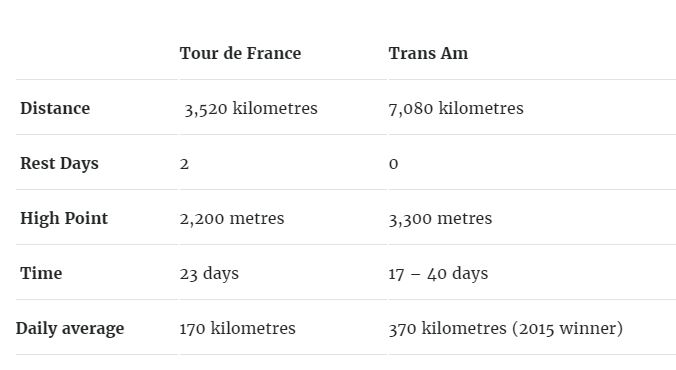 The race format is strictly self-supported, and it is not a stage race - the clock runs continuously from the start until riders cross the finish line, more than two weeks later.