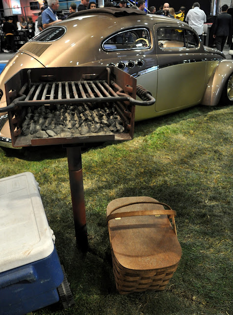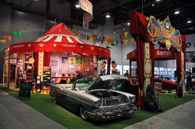 to sit down and relieve your feet from the long days walk about, and always have plenty of the little theme cows. Last year was Evil Knievel, and the year before that was Frankenstein, as SEMA was during Halloween.
