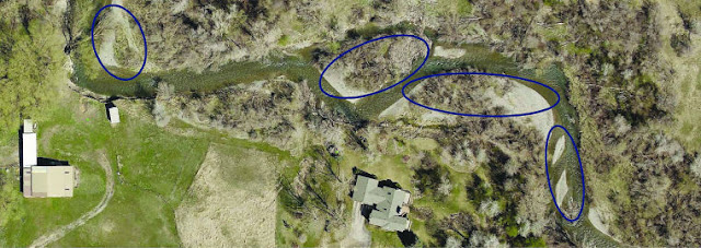 the circled areas were all cleared out to set the river into a straighter faster flowing channel