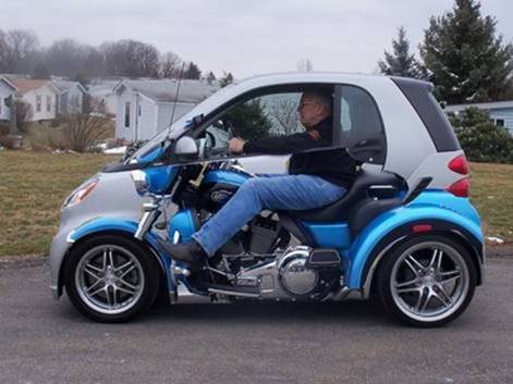 The tracks are from a side-by-side ATV, which Anderson adapted to fit the hubs of the Smart car. The skis were then designed and laser cut to fit the new and improved snowmobile.