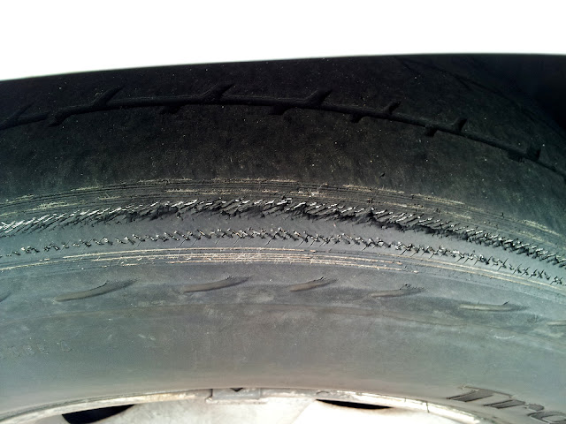 So I told him. He may not have been aware that his alignment was out of whack, and that his tire is now dangerous to himself and the other people on the road.